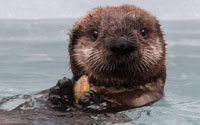 Kit is an otter that was stranded as a pup. She now lives at the Monterey Bay Aquarium.