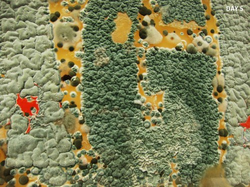To promote its new movie, Contagion, Warner Brothers commissioned the creation of living billboards. Infected with fungi and bacteria spread on giant petri dishes, the billboards blossomed in warm Toronto windows.